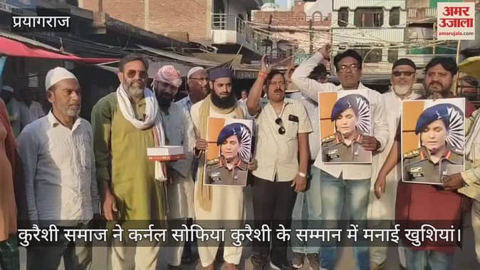 Qureshi community celebrated Colonel Sofia Qureshi's death in Bahadurganj Hatia in Prayagraj. Slogans of Bharat Mata Ki Jai were raised.