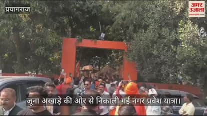 श्री पंच दशनाम जूना अखाड़े के साधु-संतों ने जूना अखाड़े के अंतरराष्ट्रीय संरक्षक महंत हरि गिरि के नेतृत्व में नगर प्रवेश किया। सभी साधु संत सुसज्जित बग्घी, घोड़े और रथों पर सवार होकर निकले। यात्रा का जगह-जगह स्वागत किया गया।