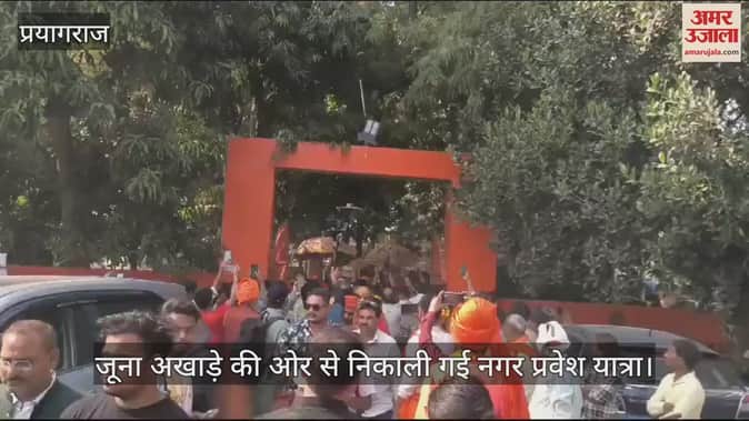 VIDEO : राजशाही अंदाज में जूना अखाड़े के साधु-संन्यासियों ने किया नगर प्रवेश, गूंजते रहे जयकारे