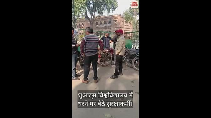 VIDEO : SHUATS : SHUATS : बकाया वेतन को लेकर शिक्षको के बाद अब सुरक्षाकर्मियों ने शुरू किया धरना प्रदर्शन, गेट पर जड़ा ताला
