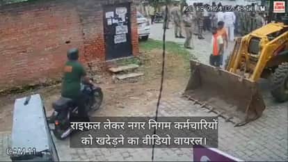 VIDEO : सपा नेता अमरनाथ मौर्य ने राइफल लेकर नगर निगमकर्मियों को खदेड़ा, एफआईआर दर्ज