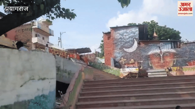 The pace of decrease in the water level of Ganga and Yamuna is very slow, Shri Bade Hanuman Mandir is submerged in the lap of Ganga