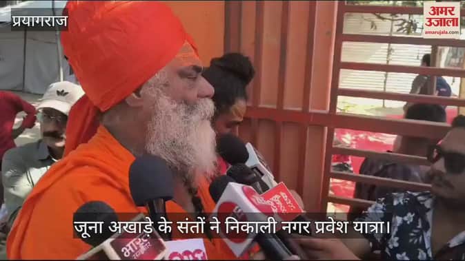 प्रयागराज संगम तट पर होने वाले महाकुंभ महापर्व के लिए श्री पंच दशनाम जूना अखाड़े के साधु-संतों ने राजशाही अंदाज में नगर प्रवेश किया। अंदावा स्थित रामापुर से शुरू हुई नगर प्रवेश यात्रा में सुसज्जित रथ, घोड़े, बग्घी आदि शामिल रहे। जगह जगह संतों का स्वागत किया गया। इसमें बड़ी संख्या में विदेशी संत भी शामिल हुए।