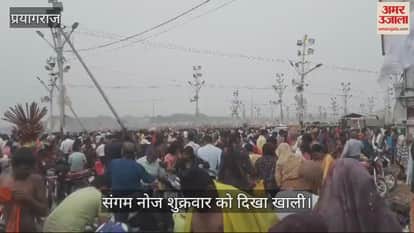 VIDEO : कभी श्रद्धालुओं से पटा रहने वाले संगम नोज पर शुक्रवार को कुछ इस तरह रहा नजारा
