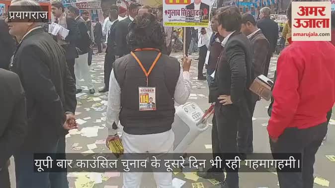 यूपी बार काउंसिल चुनाव के दूसरे दिन भी रही गहमागहमी, पंफलेट से पटा सड़क, जमकर नारेबाजी