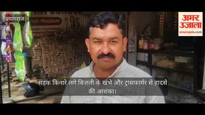 There is a possibility of accident due to electric poles and transformers installed on the roadside in Dhussa of Jhalwa area.