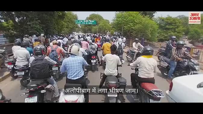 VIDEO : There was a huge traffic jam from Jhunsi to Alopibagh, the vehicle riders kept getting hot for hours in the scorching sun.