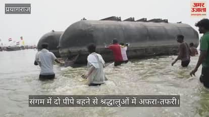 संगम में दो पीपे बहने से श्रद्धालुओं में अफरा-तफरी, लोगों ने भागकर बचाई जान