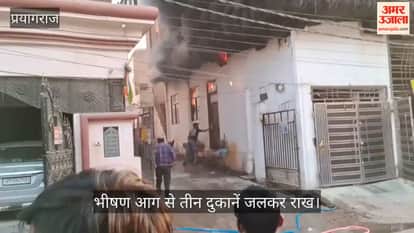 नैनी थाना क्षेत्र अंतर्गत मिर्जापुर राजमार्ग स्थित नई बाजार में मंगलवार भोर में आग लगने से तीन दुकानें जलकर राख हो गई। नई बाजार में रहने वाले आनंद केसरवानी व गुलाब केसरवानी की बर्तन व किराने की दुकान है।