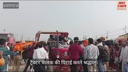 VIDEO : त्रिवेणी मार्ग पर ट्रैक्टर ने स्नानार्थियों को मारी टक्कर, चालक को पीटा