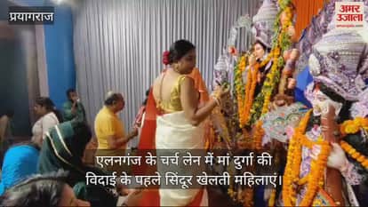 VIDEO : पूजा पंडालों में मां दुर्गा की विदाई के पहले महिलाओं ने खेला सिंदूर
