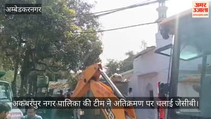 अंबेडकरनगर में अकबरपुर नगर पालिका की टीम ने अतिक्रमण पर चलाई जेसीबी