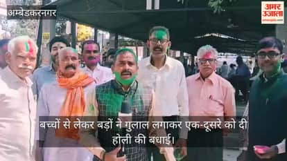 अंबेडकरनगर में बच्चों से लेकर बड़ों ने गुलाल लगाकर एक-दूसरे को दी होली की बधाई