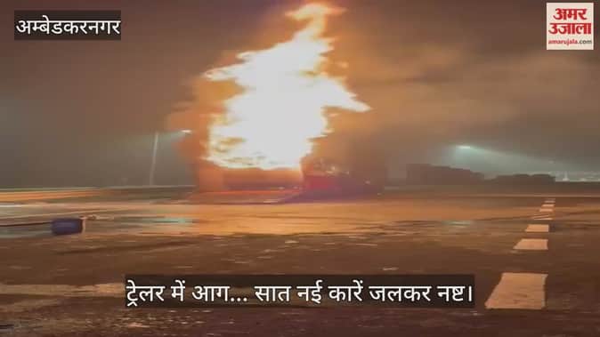 अंबेडकरनगर में ट्रेलर में लगी आग... सात नई कारें जलकर नष्ट