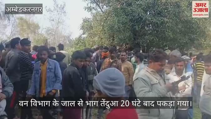 अंबेडकरनगर में वन विभाग के जाल से भाग तेंदुआ 20 घंटे बाद पकड़ा गया,हमले से युवक व वनकर्मी घायल