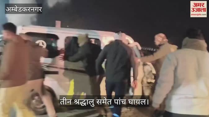 VIDEO: अयोध्या हाईवे पर गलत दिशा में चल रही ट्रैक्टर ट्रॉली से टकराई कार, गुजरात के तीन श्रद्धालु समेत पांच घायल