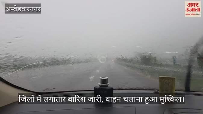 VIDEO: जिलों में लगातार बारिश जारी, वाहन चलाना हुआ मुश्किल