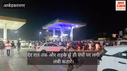 अंबेडकरनगर जनपद में पेट्रोल-डीजल को लेकर अफरा-तफरी का माहौल बन गया है। देर रात तक पेट्रोल पंपों पर वाहनों की लंबी कतारें लगी रहीं। बुधवार रात करीब 10 बजे शहर के टांडा मार्ग स्थित जगमोहन फिलिंग स्टेशन पर सैकड़ों बाइक व कार सवारों की भीड़ लग गई। लोगों में नोकझोंक होने पर शहर कोतवाल श्रीनिवास पांडेय भारी भरकम पुलिस बल के साथ मौके पर पहुंचे। इसके बाद पुलिस ने लाइन लगवाकर रात करीब 11 बजे तक वितरण कराया। आखिरकार रात में ज्यादातर पेट्रोल पंपों को बंद करना पड़ा। टांडा क्षेत्र के पेट्रोल पंपों पर भोर से ही ट्रैक्टर और किसानों की लंबी लाइनें लगी हुई हैं। शहर के पंपों पर भीड़ कम होने का नाम नहीं ले रही है। आपूर्ति प्रभावित होने की अफवाह के चलते लोग आवश्यकता से अधिक खरीद कर रहे हैं।