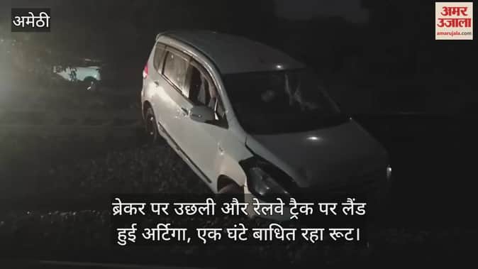 अमेठी में ब्रेकर पर उछली और सीधे रेलवे ट्रैक पर पहुंच गई अर्टिगा, एक घंटे बाधित रहा रूट