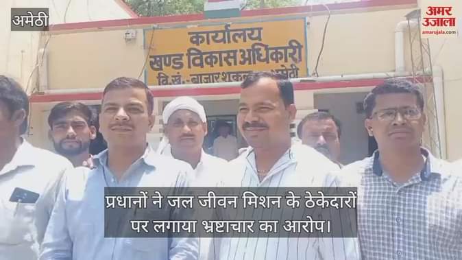 यूपी के अमेठी में बृहस्पतिवार को पूर्व निर्धारित बैठक में जल निगम के नामित अधिकारी और जल जीवन मिशन के ठेकेदार ब्लॉक सभागार में नहीं पहुंचे। बैठक बुलाने के बाद अधिकारियों के खुद न आने से प्रधान संघ के अध्यक्ष सतीश मिश्रा के नेतृत्व में प्रधानों ने प्रदर्शन किया। संघ के अध्यक्ष ने जल जीवन मिशन के ठेकेदारों पर भ्रष्टाचार का आरोप लगाते जिम्मेदार अधिकारियों से जांच करवाकर कार्रवाई की मांग की। उन्होंने कहा कि जल जीवन मिशन में भ्रष्टाचार व्याप्त है।
