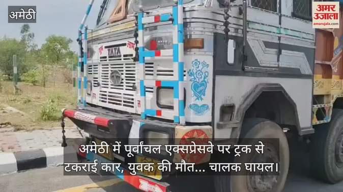 VIDEO : अमेठी में पूर्वांचल एक्सप्रेसवे पर ट्रक से टकराई कार, युवक की मौत... चालक घायल