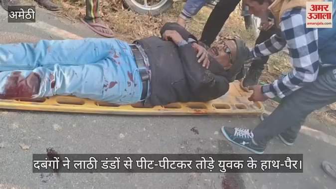 अमेठी में बाइक सवार दबंगो ने एक युवक पर बीच सड़क पर सोमवार को लाठी डंडो से हमला कर दिया। घटना को अंजाम देकर बाइक सवार दबंग मौके से फरार हो गए।दबंगो के हमले युवक का हाथ और पैर टूट गया और उसे चोटें आई।स्थानीय ग्रामीणों की सूचना के बाद मौके पर पहुंची एंबुलेस से घायल युवक को इलाज के लिए अस्प्ताल में भर्ती कराया गया है। कोतवाली क्षेत्र के सुल्तानपुर रोड स्थित बेनीपुर चौराहे के पास सोमवार को संग्रामपुर थाना क्षेत्र के भौसिंहपुर गांव के रहने वाले राजू सिंह पर बाइक सवार अज्ञात दबंगो ने लाठी डंडो से ताबड़तोड़ हमला कर दिया। दबंगो के हमले में राजू सिंह को गंभीर चोटें आई और उनका एक हाथ और एक पैर टूट गया। घटना को अंजाम देकर सभी दबंग मौके से फरार हो गए। स्थानीय ग्रामीणों ने एम्बुलेंस को फोन किया। इसके बाद मौके पर पहुंची एम्बुलेन्स से राजू को सीएचसी पहुंचाया। जहां उनका इलाज चल रहा है और स्थिति गंभीर बनी हुई है।विवाद का कारण क्या रहा इसकी जानकारी नही हो पाई है।