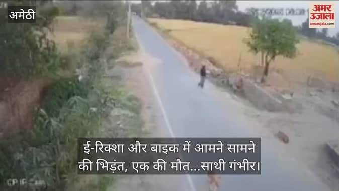 यूपी के अमेठी में मोहनगंज इलाके में रविवार शाम दर्दनाक सड़क हादसा हो गया। यहां तेज रफ्तार ई रिक्शा और बाइक की आमने-सामने टक्कर हो गई। हादसा इतना भीषण था कि टक्कर के बाद बाइक सवार एक युवक उछलकर खेत में गिरा, जबकि साथी सड़क पर गिर गया। हादसे में एक युवक की मौत हो गई, जबकि साथी गंभीर रूप से घायल हो गया। उसे रायबरेली जिला अस्पताल के लिए रेफर किया गया है। हादसे के सीसीटीवी सामने आया है।