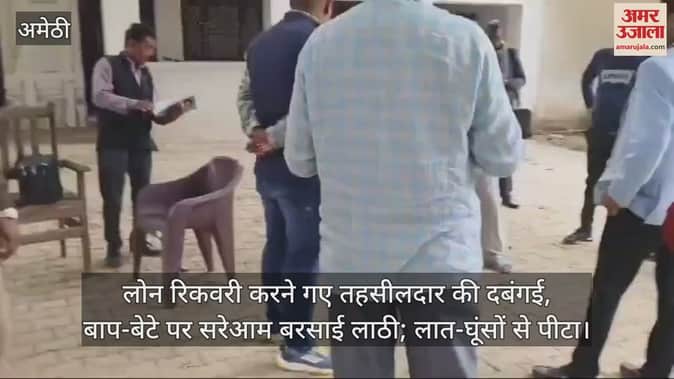 यूपी के अमेठी में लोन के बकाया रुपये की रिकवरी करने गए तहसीलदार और उनकी टीम की दबंगई सामने आई है। पूछताछ के दौरान राजस्व कर्मियों और पुलिस ने बकायेदार बाप-बेटे को लाठी और लात घूंसों से पीटा। तहसील प्रशासन की गुंडई का वीडियो सामने आया है। वीडियो वायरल होने के बाद तहसीलदार ने सफाई दी है कि गांव में चल रही चुनावी रंजिश के कारण कुछ लोगों ने वीडियो बनाकर वायरल है। पूरा मामला तिलोई तहसील क्षेत्र के बतिया गांव का है।