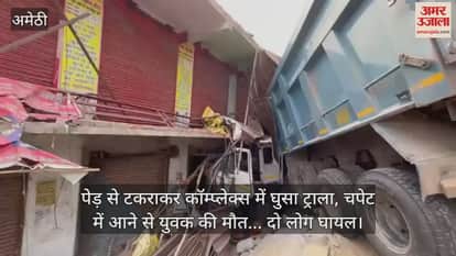 पेड़ से टकराकर कॉम्प्लेक्स में घुसा ट्राला, चपेट में आने से युवक की मौत... दो लोग घायल