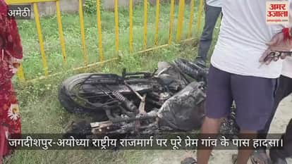 VIDEO: ट्रेलर से टकराई बाइक में लगी आग, युवक की मौत, जगदीशपुर-अयोध्या राष्ट्रीय राजमार्ग पर पूरे प्रेम गांव के पास हादसा
