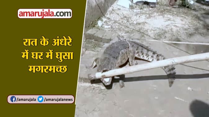 यूपी के अमरोहा में एक मगरमच्छ खड़कपुर गांव के एक घर में घुस गया। बुधवार सुबह जैसे ही घर के लोगों ने इसे देखा तो वो डर गए। गांव के लोगों ने मगरमच्छ को डंडे और रस्सी के सहारे घर से बाहर निकाला। सूचना पर पहुंची वन विभाग की टीम ने इसे यहां से रेस्क्यू कर गंगा में छोड़ दिया।