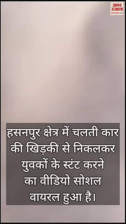 VIDEO : हसनपुर में कार की खिड़की से बाहर निकल किया स्टंट, दो युवकों का वीडियो वायरल