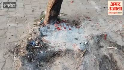 गजरौला में पिलखन का हरा भरा पेड़ नष्ट करने के लिए उसकी जड़ में गर्म राख डाली जा रही है। वन विभाग के एसडीओ ने स्टाफ को भेज कर राख डालने वाले के खिलाफ कार्रवाई के निर्देश दिए।