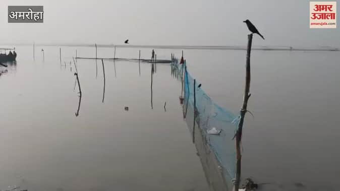 श्रद्धालुओं की सुरक्षा के लिए गंगा जल में जाल की बैरिकेडिंग