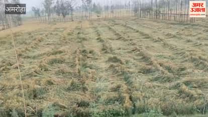 गजराैला में बारिश के साथ चली हवा ने गेहूं की फसल को बड़ा नुकसान पहुंचाया है। खेतों में फसल जमींदोज हो गई। इससे किसानों के चेहरे उदास हो गए हैं। किसानों का कहना है कि बारिश आफत बनकर आई है।