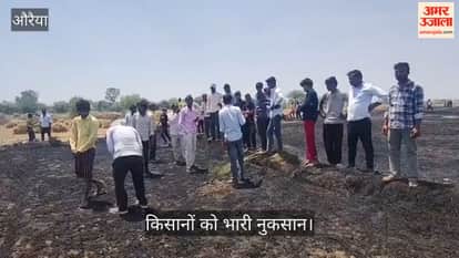 औरैया में गेहूं के खेतों में भीषण आग से 10 बीघा फसल जलकर राख