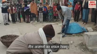 औरैया: एक साथ तीन अजगर निकलने से ग्रामीण सहमे, विभाग ने रेस्क्यू कर जंगल में छोड़ा