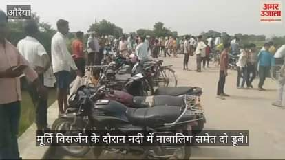 VIDEO : औरैया में मूर्ति विसर्जन के दौरान हादसा, नाबालिग समेत दो लोग नदी में डूबे, तलाश में जुटी पुलिस