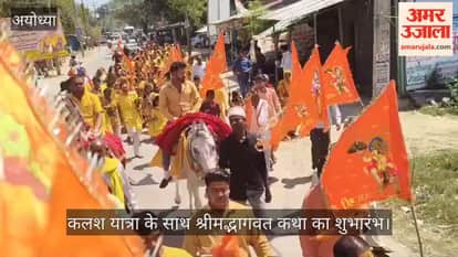 अयोध्या के तारुन में कलश यात्रा के साथ श्रीमद्भागवत कथा का शुभारंभ
