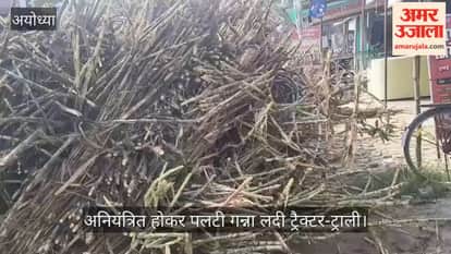 अयोध्या में अनियंत्रित होकर पलटी गन्ना लदी ट्रैक्टर-ट्राली