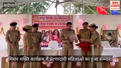 अयोध्या में उत्तर प्रदेश पुलिस के मिशन शक्ति अभियान के पांचवें चरण के द्वितीय फेज के अंतर्गत पुलिस लाइंस सभागार में बृहस्पतिवार को प्रेरणादायी महिलाओं को सम्मानित किया गया। कार्यक्रम की अध्यक्षता करते हुए वरिष्ठ पुलिस अधीक्षक डॉ. गौरव ग्रोवर ने कहा कि समाज के अंतिम पायदान पर खड़ी महिलाओं के उत्थान के लिए सामूहिक प्रयास जरूरी हैं। उन्होंने बताया कि महिला सुरक्षा से जुड़े मामलों को प्राथमिकता के आधार पर निस्तारित किया जा रहा है। इस दौरान पीसीएस व अन्य प्रतियोगी परीक्षाओं में चयनित सोनम यादव, अनामिका मिश्रा, स्नेहिल श्रीवास्तव, सुप्रिया यादव, साक्षी पटेल व अंशिका पाठक को सम्मानित किया गया। साथ ही समाजसेवा में योगदान देने वाली महिलाओं और मिशन शक्ति में उत्कृष्ट कार्य करने वाली महिला पुलिसकर्मियों को भी प्रशस्ति पत्र दिए गए।