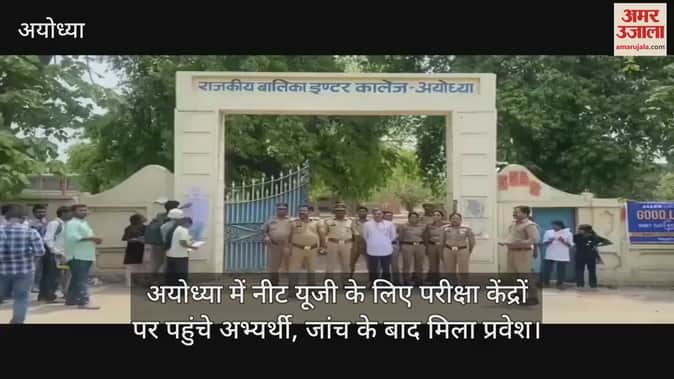 अयोध्या में नीट यूजी के लिए परीक्षा केंद्रों पर पहुंचे अभ्यर्थी, जांच के बाद मिला प्रवेश