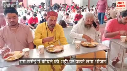 अयोध्या में राम रसोई में कोयले की भट्ठी पर पकने लगा भोजन