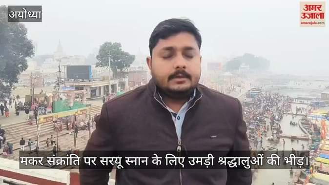 VIDEO : मकर संक्रांति पर सरयू स्नान के लिए उमड़ी श्रद्धालुओं की भीड़