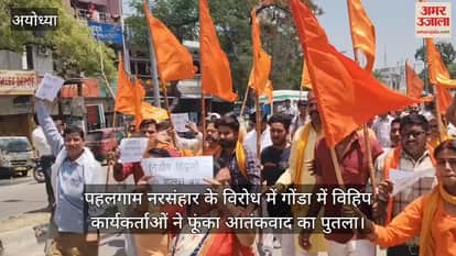 पहलगाम नरसंहार के विरोध में गोंडा में विश्व हिंदू परिषद के कार्यकर्ताओं ने आक्रोश व्यक्त किया। विभाग संयोजक शारदाकांत पांडेय की अगुवाई में सभी लोग एकत्र हुए। एलबीएस चौराहे पर इकट्ठा होकर आतंकवाद व पाकिस्तान का पुतला फूंका। इसके बाद शहीदे आजम भगत सिंह इंटर कॉलेज के मैदान में दो मिनट का मौन रखकर मृतकों की आत्मा की शांति के लिए प्रार्थना की। इस दौरान जिला संयोजक आकाश सागर, देवनारायण तिवारी, शिवकुमार शास्त्री, विपिन पांडेय, दिवाकर सोमानी, सुनील, बृजेश आदि रहे।