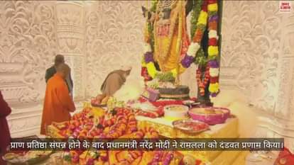VIDEO : Ram Mandir Pran Pratishtha: पीएम नरेंद्र मोदी ने गर्भगृह में रामलला को किया 'दंडवत प्रणाम', देखें वीडियो