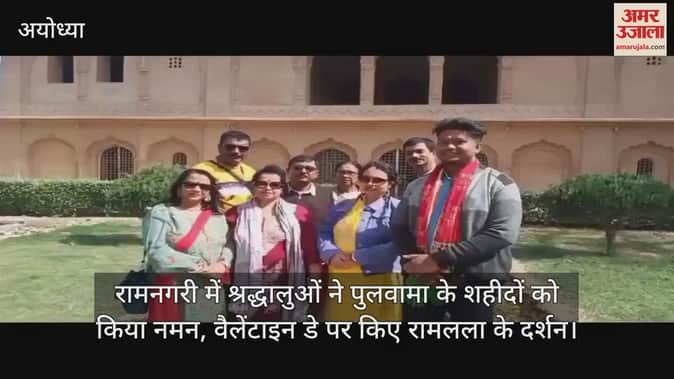 VIDEO : रामनगरी में श्रद्धालुओं ने पुलवामा के शहीदों को किया नमन, वैलेंटाइन डे पर किए रामलला के दर्शन