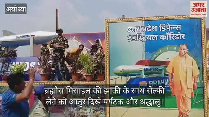 अयोध्या में दीपोत्सव के मौके पर निकाली जा रही झांकियों की शोभायात्रा में ब्रह्मोस मिसाइल की झांकी भी शामिल रही। यह लोगों के बीच खासी आकर्षण का केंद्र रही। पर्यटक और श्रद्धालु इस झांकी के साथ सेल्फी लेने को आतुर दिखे।