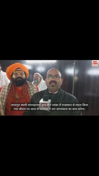 जगदगुरु स्वामी रामभद्राचार्य द्वारा बीते नवंबर में राजस्थान से रवाना किया गया श्रीराम रथ आज से अयोध्या में जन जागरुकता का काम करेगा। अभियान 22 जनवरी तक चलेगा।