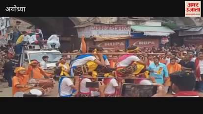VIDEO : अयोध्या में जयकारों की गूंज के बीच निकली मां दुर्गा की विसर्जन शोभायात्रा